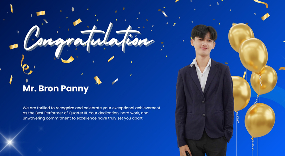 លោក ប្រុន ផាន់នី មានតួនាទីជាអ្នកបណ្ដុះបណ្ដាលប្រព័ន្ធ បានបង្ហាញភាពលេចធ្លោតាមរយៈការគោរពវិន័យយ៉ាងខ្ជាប់ខ្ជួន ភាពមានទំនួលខុសត្រូវលើកិច្ចការងារប្រចាំថ្ងៃ និងភាពសាមគ្គីជាមួយក្រុមការងារសម្រេចបាននូវលទ្ធផលវិជ្ជមានជាច្រើនជូនដល់ស្ថាប័នដែលជាកត្តាជំរុញឲ្យលោកទទួលបានជ័យលាភីបុគ្គលិកឆ្នើមប្រចាំការិយាល័យផ្នែកបណ្ដុះបណ្ដាលប្រព័ន្ធ នៅក្នុងត្រីមាសទី៣នេះ។